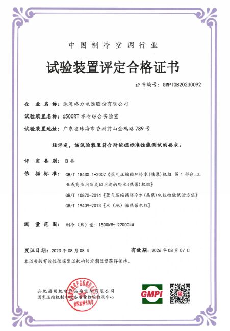近日,格力電器6500RT水冷綜合實驗室經(jīng)合肥通用機電產(chǎn)品檢測院(GMPI)專家現(xiàn)場審核驗證,憑借高精度的測試數(shù)據(jù)、穩(wěn)定的運行以及良好的結(jié)果一致性正式獲得國家壓縮機制冷設(shè)備質(zhì)量檢驗檢測中心認可,獲頒試驗裝置評定合格證書。值得一提的是,據(jù)GMPI數(shù)據(jù)顯示,該實驗室也是目前行業(yè)內(nèi)最大的水冷綜合實驗室。
