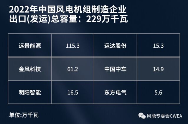 2022年,中國新增風(fēng)電機(jī)組出口(發(fā)運(yùn))容量為229萬千瓦,累計(jì)出口(發(fā)運(yùn))容量達(dá)1193萬千瓦,出口設(shè)備已遍布全球5大洲共49個(gè)國家。