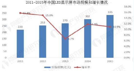 我國LED顯示屏產(chǎn)業(yè)的技術(shù)基礎(chǔ)和水平是相當先進的,主要產(chǎn)品和關(guān)鍵技術(shù)與國際同行業(yè)的先進水平能夠大致保持一致。LED器件技術(shù)和性能不斷提高,電子技術(shù)發(fā)展日新月異,這為LED顯示屏產(chǎn)品的技術(shù)深化和提高帶來良好的基礎(chǔ)。同時LED顯示在社會生活的各個領(lǐng)域得到了廣泛的應(yīng)用,半導體照明產(chǎn)業(yè)的發(fā)展更為LED顯示產(chǎn)業(yè)帶來良好契機,因此,LED顯示市場發(fā)展前景樂觀。 LED產(chǎn)業(yè)鏈主要包括原材料、設(shè)備,上游芯片制造,中游LED封裝以及下游LED應(yīng)用。而下游LED應(yīng)用又主要分為LED照明,LED顯示屏以及LED背光應(yīng)用等。LED應(yīng)用是整個產(chǎn)業(yè)鏈中能夠帶來較高附加價值的重要一環(huán)。 目前,LED下游應(yīng)用中市場規(guī)模最大的是照明領(lǐng)域,其次是背光應(yīng)用和顯示屏。顯示屏應(yīng)用規(guī)模仍維持一個相對穩(wěn)定快速增長趨勢,尤其是隨著小間距LED顯示屏技術(shù)的成熟,LED顯示屏應(yīng)用將逐漸從室外超大尺寸顯示應(yīng)用走向室內(nèi),應(yīng)用領(lǐng)域?qū)@著拓寬,預(yù)計未來幾年將會保持非常高速的增長速度,從而使得LED顯示屏在整個下游應(yīng)用產(chǎn)業(yè)鏈中的占比逐漸提升。 據(jù)前瞻產(chǎn)業(yè)研究院《中國LED行業(yè)市場前瞻與投資戰(zhàn)略規(guī)劃分析報告》數(shù)據(jù)顯示,2015年全國LED顯示應(yīng)用行業(yè)市場銷售規(guī)模較2014年度有新的增長,全年市場總量預(yù)計將達335億元,增長幅度在10%左右。
