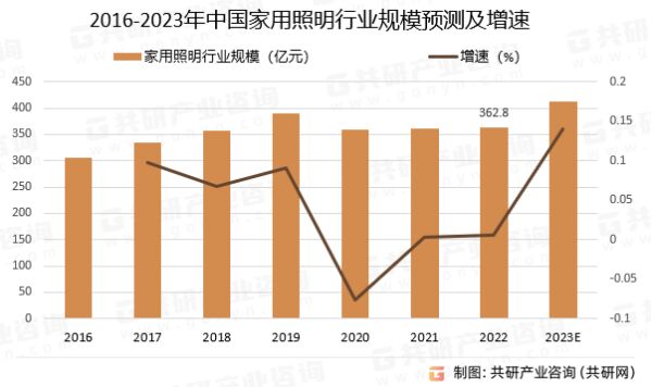 2016-2023年中國(guó)家用照明行業(yè)規(guī)模預(yù)測(cè)及增速