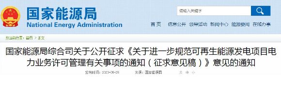 5月25日,本報(bào)記者從國家能源局獲悉,為持續(xù)深化“放管服”改革,進(jìn)一步規(guī)范可再生能源發(fā)電項(xiàng)目電力業(yè)務(wù)許可管理,助力推動(dòng)能源綠色低碳高質(zhì)量發(fā)展,國家能源局綜合司發(fā)布了《關(guān)于進(jìn)一步規(guī)范可再生能源發(fā)電項(xiàng)目電力業(yè)務(wù)許可管理有關(guān)事項(xiàng)的通知(征求意見稿)》(以下簡稱《通知》)。