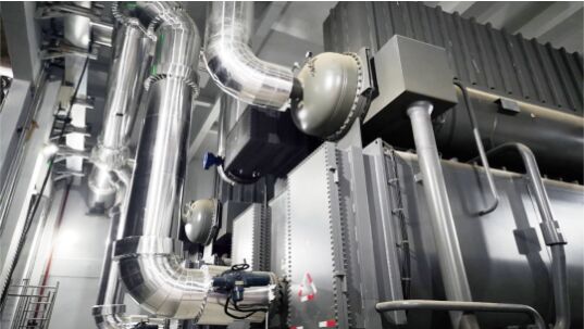 長輸中繼能源站大溫差項目,采用16臺60MW溴化鋰吸收式換熱機組降低零次側熱網回水溫度,熱網回水利用電廠或工業(yè)余熱進行加熱,一個采暖期余熱供熱可實現二氧化碳減排32.75萬噸。