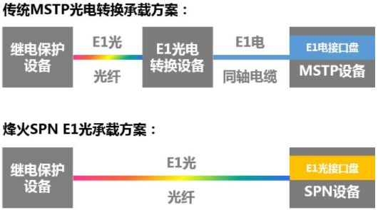 繼電保護業(yè)務(wù)對于電網(wǎng)的發(fā)、輸、變、配及重要用電設(shè)備的穩(wěn)定安全運行至關(guān)重要,但是傳統(tǒng)繼保業(yè)務(wù)傳輸時需經(jīng)過光電轉(zhuǎn)換設(shè)備,將E1光信號轉(zhuǎn)換為E1電信號與MSTP設(shè)備對接,光電轉(zhuǎn)換的過程需要額外采購光電轉(zhuǎn)換設(shè)備,且會導(dǎo)致繼保業(yè)務(wù)因為分段的光纖、電纜轉(zhuǎn)接過程增加故障發(fā)生率。烽火通信SPN設(shè)備在滿足電力通信網(wǎng)超低時延、海量連接、安全可靠、綠色低碳、智能控制五個維度智能電力通信網(wǎng)需求的同時,還開發(fā)了8路光口的E1光接口盤,為繼電保護業(yè)務(wù)承載貢獻三大價值: