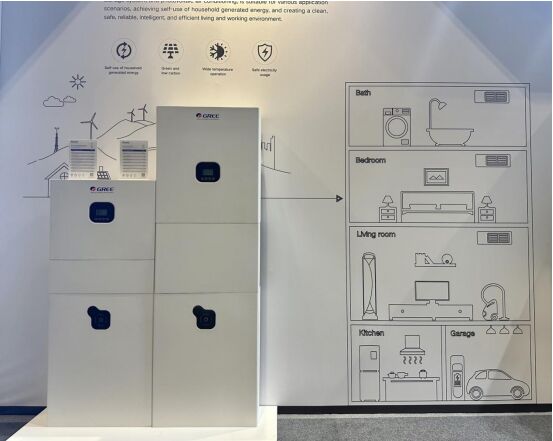 工作人員用手機給現(xiàn)場觀眾們展示如何控制、監(jiān)控這臺家庭儲能,能源數(shù)字化帶來的智能和便捷,讓看展者們大受震撼。格力鈦儲能系統(tǒng)與混合逆變器模塊集成一身,帶來簡約美觀的一體化外觀造型,占地面積僅0.15平方米,多種工作模式智能管控,靈活實現(xiàn)電力調(diào)度、存儲及用電負載管理,完美融入家居氛圍;即插即用,實現(xiàn)整機單人搬運、30分鐘快速安裝,避免現(xiàn)場配電安裝、走線不美觀、多部件調(diào)試等不便問題,為住宅、別墅等家用領(lǐng)域輸送充足電力,也可在自然災(zāi)害頻發(fā)地區(qū)作為應(yīng)急電源,為電力不穩(wěn)定或孤島離網(wǎng)地區(qū),提供穩(wěn)定電力支撐等。